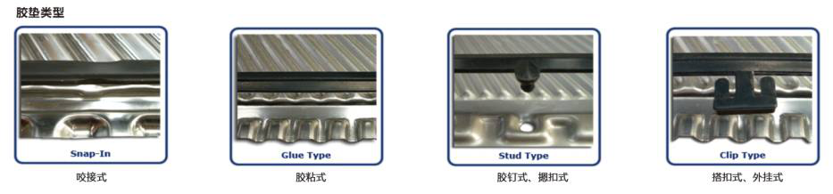 冰克板式換熱器密封墊由咬接式、膠粘式、摁扣式、外掛式等不同類型,如下圖;